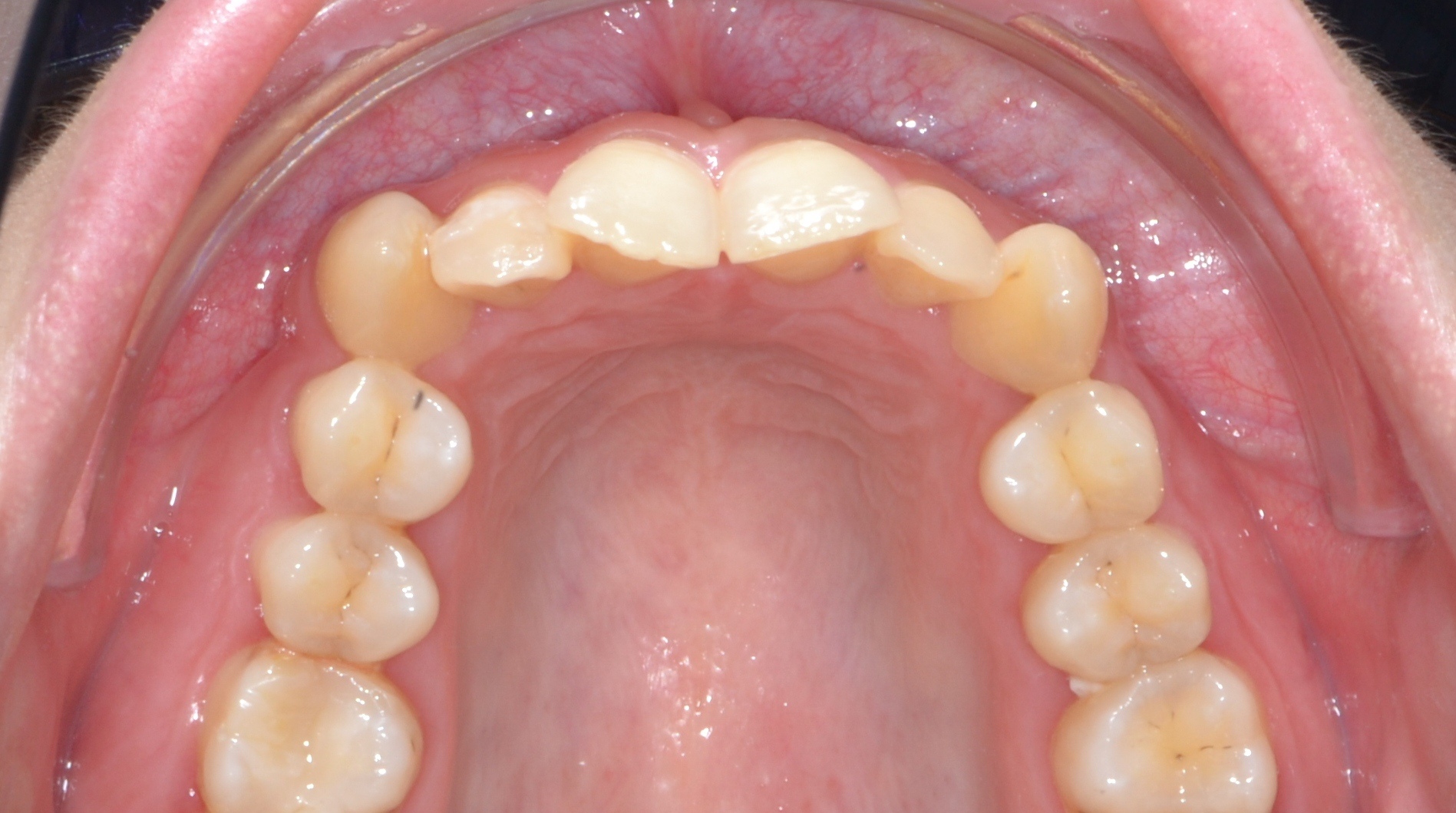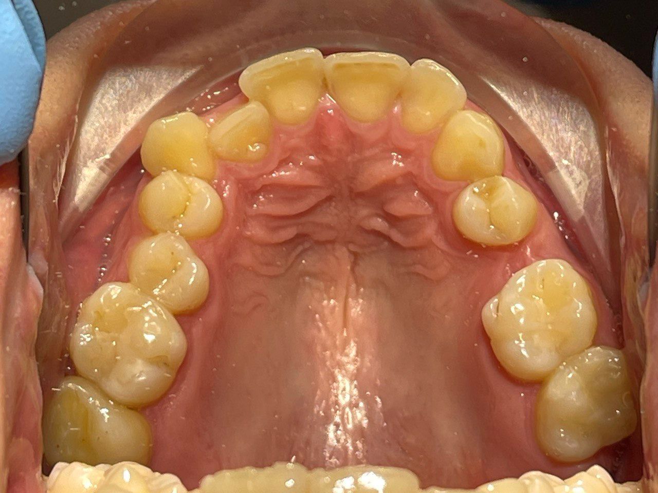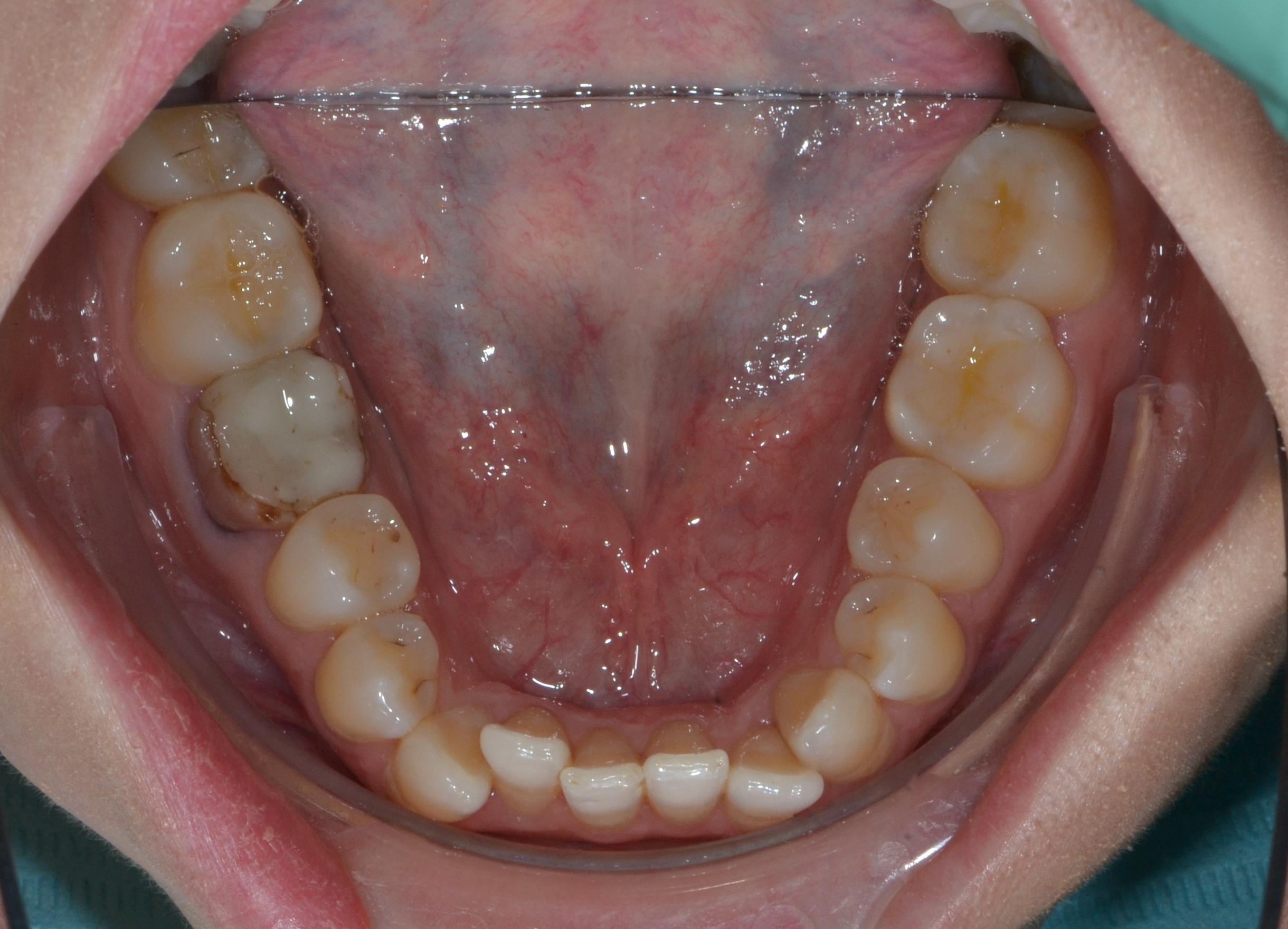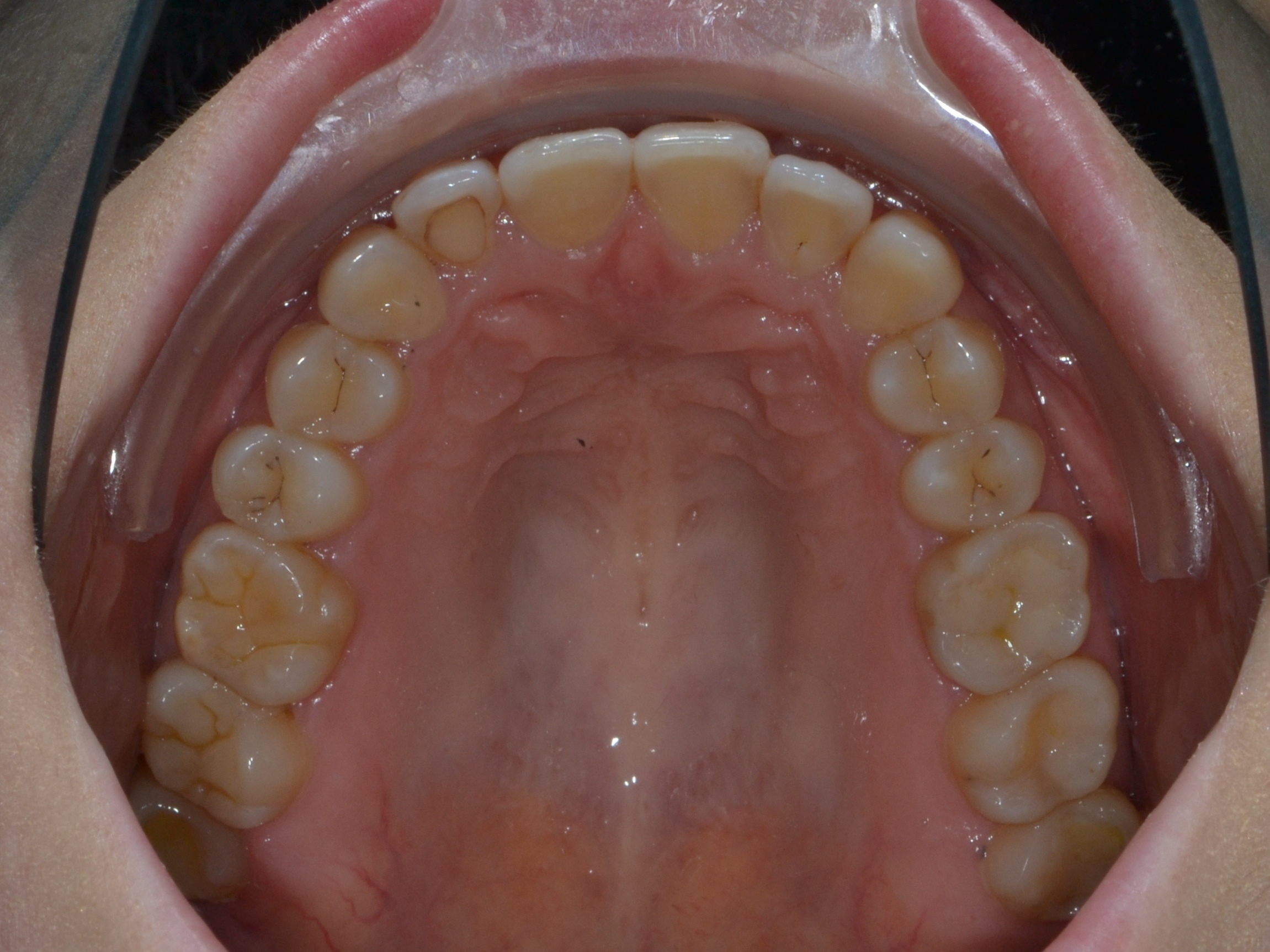 • 23 зуб в щёчном положении, 22 зуб в нёбном положении с дефицитом места