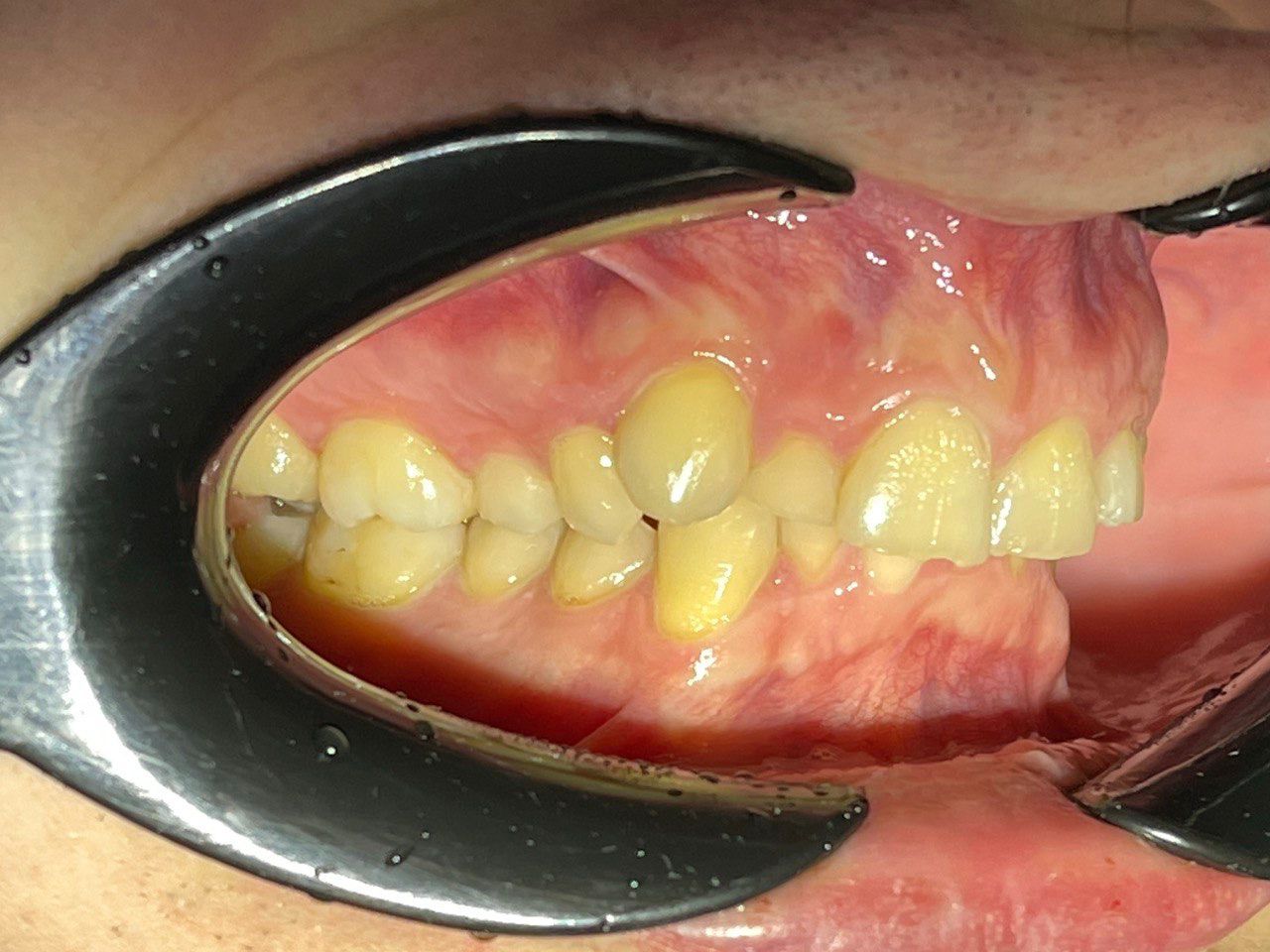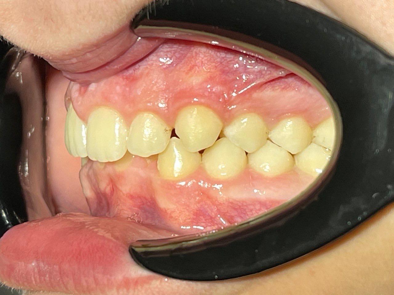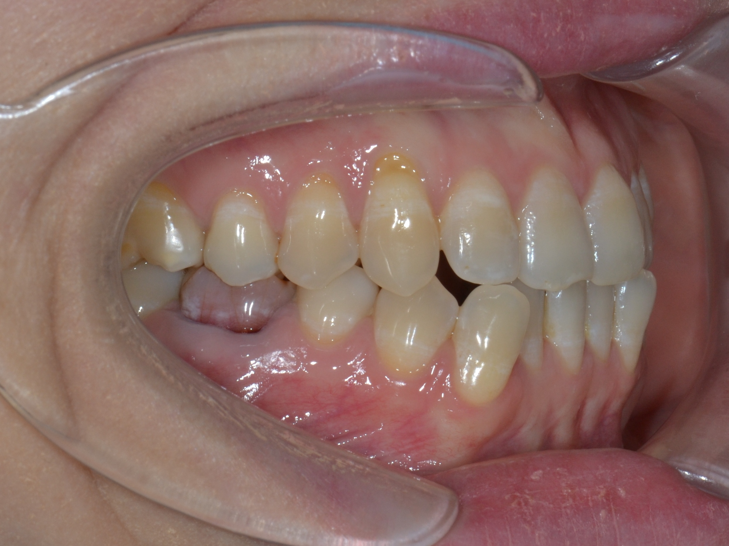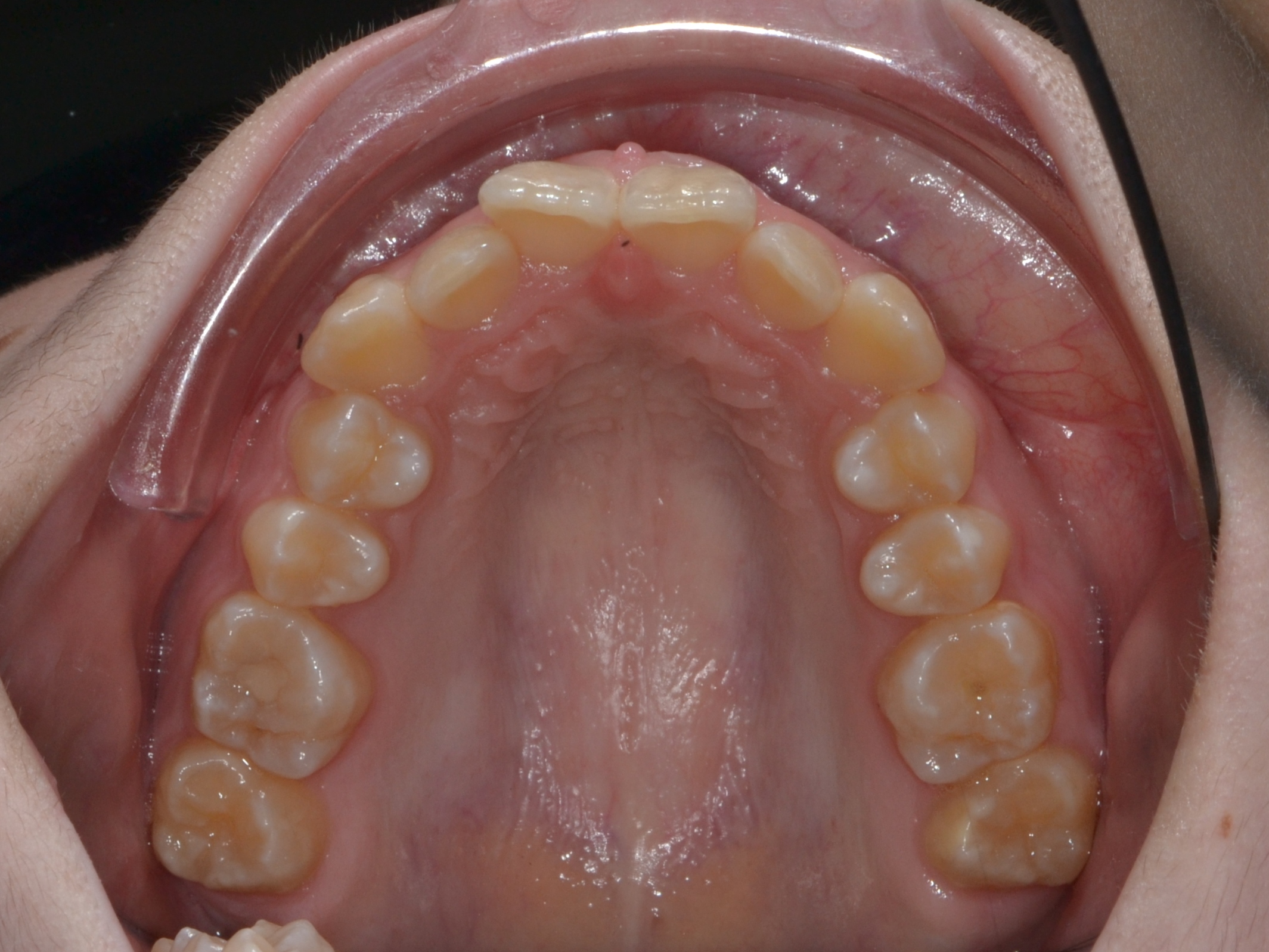 • 23 зуб в щёчном положении, 22 зуб в нёбном положении с дефицитом места