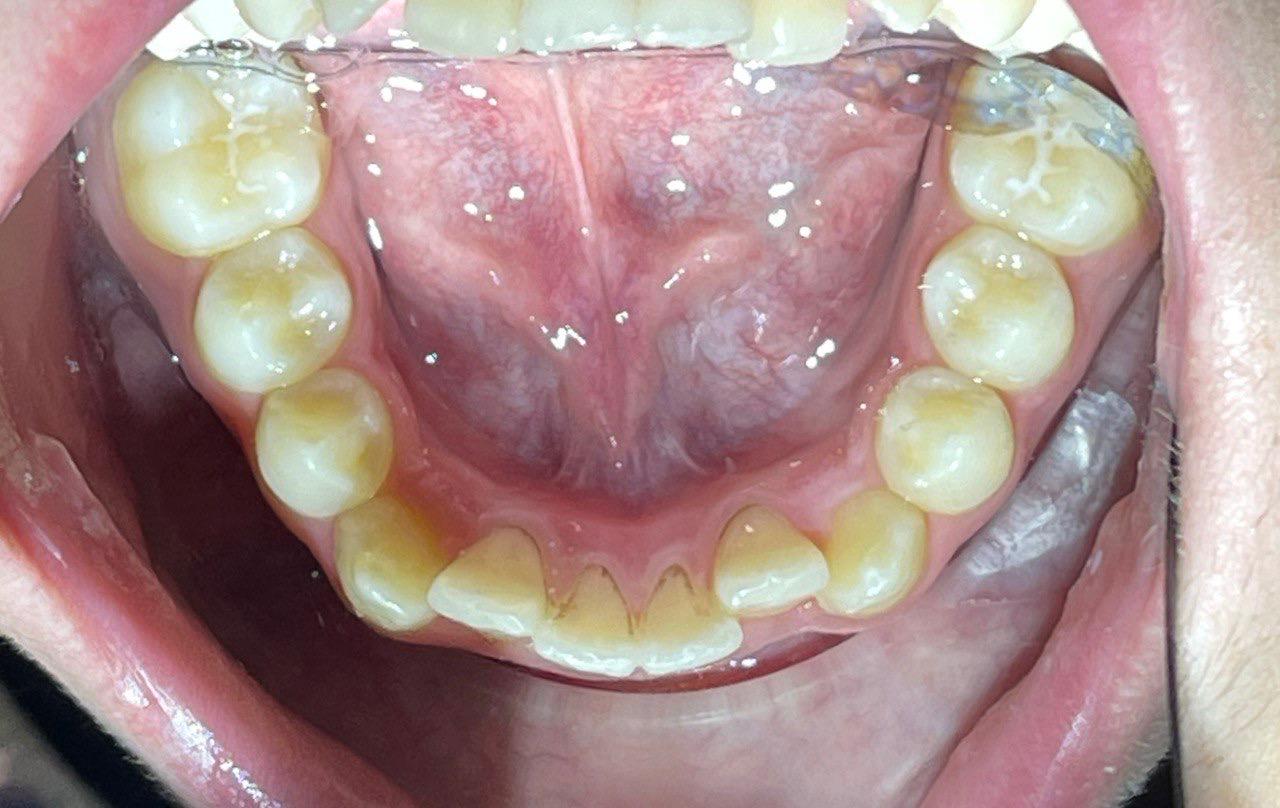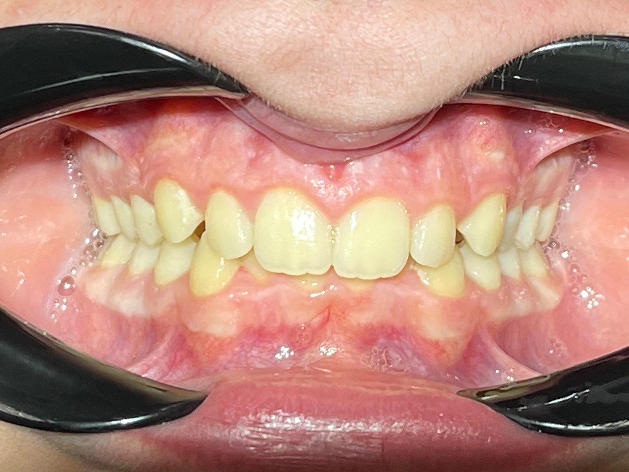 • Скученное положение зубов дистальное положение и ротация нижней челюсти
